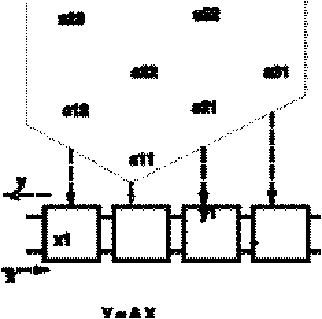 図2は、幅Wを持つN×Nの帯行列とN次元ベクトルxの積を求めるアレイである。この例では一端からxを入力し、上方から帯行列要素を入力してやると、データがぶつかったセルで積和(y=y+ax)が取られ、それが流されることによって答えyが出力されていく。必要なセル数はW/2、実行時間は2W・Wである。