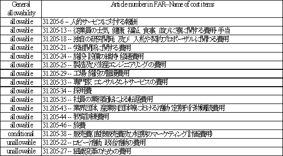 上記を見れば明らかなように、企業の事業活動遂行の上で必要な費用のほぼ全てが政府研究開発調達契約においても賦課可能となっていることがわかる。