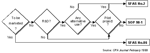 SOP 98-1, Accounting for the Costs of Computer Software Developed or Obtained for Internal Use by AcSEC (AICPA's Accounting Standards Executive Committee) 本規則は、SFASNo.86では対象外とされた「内部使用目的のソフトウエア」の開発/調達費用を資産化し、償却対象とするよう定めている。 ここでいう「内部使用を目的とする」という判断基準は以下の通りである。 |