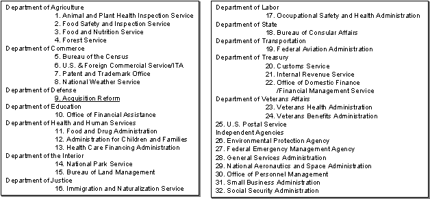 大統領令12862号(1993年9月)により各省庁は以下のアクションをとらねばならない。