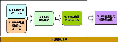 本章は次のような論理構成になっている。まずIPR創出を促進する政策・体制の構造が明らかにされ(1)、次にその体制下でIPが創出され、権利として所有されていく際の帰属と費用負担のあり方(2)が記述される。このような仕組み(1&2)で生み出されているIPRの実際の創出状況(3)が続き、そのIPRをいかに商業化して経済的価値を生じさせていくか(4)が述べられる。そして、商業化の成果としての経済的効果(5)が算出される。最後にこうしたIPRの創出・活用による国富の拡大政策を支える思想(6)を抽出する。