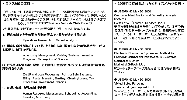 2001年3月12日USPTOは、「ビジネス方法(メソッド)」分野単独のホームページ(“Patent Business Method”)を開設(http://www.uspto.gov/web/menu/pbmethod/)、詳細な情報提供を行っている。クラス705(ビジネス特許)への関心・批判の高まり、申請数の急増(「3.5 IPRの創出状況」参照)を受けた措置である。