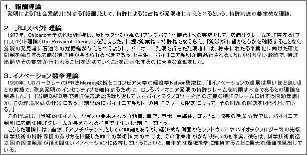 ※ 参考文献:「特許研究」第29号;第41〜45頁(2000年3月発行) 特許庁審査官 田村明照氏 「バイオテクノロジーの広い特許保護を巡る最近の論点」