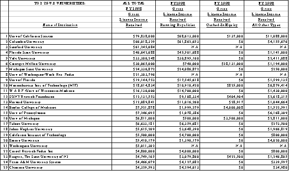 Appendix F:全米リサーチ大学ロイヤルティー収入Top 25