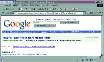 Googleは、ホームページのportal化を目指しておらず、図3.9-1に示すようにホームページはシンプルであり、絵の入った重い広告も画面に表示されることなく、ユーザの利便性を考えたシステムとなっている。一方で、サーチエンジン部分のみを一括してYahoo!やBiglobe(NEC)に使ってもらうというビジネスモデルを構築している。ビジネスモデルの詳細は後述する。