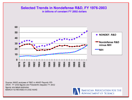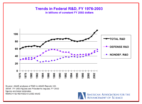 and medicine)」の性格を強めている。2003年度も再び、国家ミッションの中で防衛R&Dと健康R&Dに高い優先度を置く。DOD(Depart
