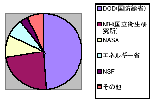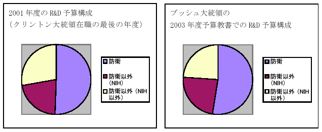 of Defense: 米国国防総省)とNIH(National Institute of Health: 国立衛生研究所)の2つが、ブッシュ大統領の最優先R&D投資先となっている(図
