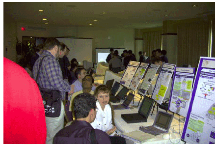 デモンストレーション会場では、SemanticWebとモバイルエージェントに関するデモが多く見受けられた。FIPA標準を盛り込んだ組み込み向けモバイルエージェントLEAPによる、PDAとPC混在環境上でのスケジュール調整のデモなどが行われた。他にはインタフェースエージェントに関するもの、DAML(DARPA