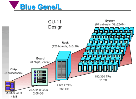 http://www.research.ibm.com/bluegene/BG_External_Presentation_January_2002.pdfに詳細計画が紹介されている。図2.2に構成概念図を示す。