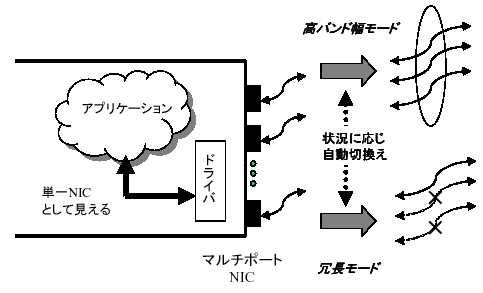 RI2Nのベースとして、高密度実装されたマルチポートネットワークインタフェースに対し、ドライバレベルでマルチパス制御・故障チェックを行うシステムを設計・開発する。故障チェックには定期的なテストパケットの交換を用い、一時的なエラーと恒久的なエラーを区別する。通常はマルチパスはユーザから透過なバンド幅倍増モードで用いられるが、故障が検出された場合は残りチャネルを代替パスとして利用しつつ、上位レベルソフトウェアとの協調により故障検出・対応プロンプティングを行う。これらの基本システムを研究前期で設計・開発する。研究後期では、ネットワークインタフェース単位またはノード単位での故障部位の活線交換に関し,「クラスタ構築技術」との連携により一貫したPlug-and-Playシステムを実現する。さらに、マルチポートNICにどのようにトラフィックを割り振るかについて、メッセージパッシング、ソフトウェアDSM等の用途に応じた最適化を可能とし、最終的にメガスケールシステムに対応したバンド幅とディペンダビリティを提供する。