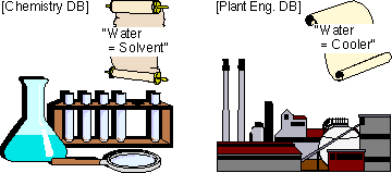 化学者の整備したデータベースは、化学の仕事上の文脈で用語・知識が体系化されており、例えば「水」は「溶媒」に位置付けられている。一方、プラントエンジニアの整備したデータベースは、プラントの仕事上の文脈で用語・知識が体系化されており、例えば「水」は「冷却材」に位置付けられている。このような文脈の違いを無視して、データベースを相互に接続したり、インターネット上で情報検索を試みても、ノイズに相当するデータの比率が非常に大きくなり、実際上は役に立たない。また、各利用者がこのような文脈の違いを意識しながらデータベースを操作することも、非常に難しい。このように、知識のドメインとオントロジーの整合性を自動的に取るようなメカニズムの実現が望まれる。