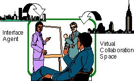 近年、グラフィカルインタフェース技術の進歩により、パソコンを始めとする情報機器のユーザインタフェースは、人間の生活や活動する環境のメタファーで構成されてきている。最も典型的な例は「デスクトップメタファー」である。これは「机の上」「書類」という2次元空間で行うさまざまな処理に関わるオブジェクトや操作を、2次元的に配置したアイコンの操作により計算機上で実現しようとするものである。仮想メディア技術(バーチャルリアリティ技術)は、このメタファーを3次元空間に拡張する。「ルームメタファー」「ワークスペースメタファー」により、遠隔地の人々と同じ部屋で共同作業しているような空間的インタフェースを提供したり、あるソフトウェアをエージェント化して擬人的に仮想空間に登場させる等も、可能となろう。