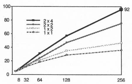 (縦軸: 台数効果; 横軸: プロセサ数)