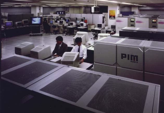 以上のようなハードウェアが、現在のICOTのコ ンピュータパワーを支えています。本日のデモで も、三田国際ピルの計算機室(図6,7)から、ネッ トワーク経由でPIMを使って、プレゼンテーション の合間にさりげなくリアルタイムデモが挿入され るという仕掛けになっています。