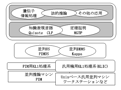 この基盤化プロジェクトはその辺を捉えて、そ ういう成果を、ICOTが作った並列推論マシンとい う特定のマシン上だけではなく、世の中で広く使 われているワークステーション、特にUnixベース のワークステーンョンや並列マシンの上に載せ て、将来のコンピュータ技術や新技術開発の研究 基盤にしましょうということで開始されたわけで す。