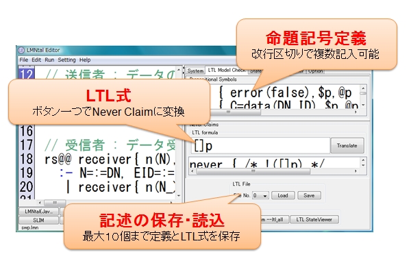 画面上からLTL2BAを呼び出すことができますのでNever Claimの記述を即座に行うことが可能です。