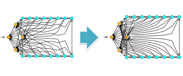 遷移を考慮したアルゴリズムによる配置を行います。