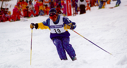 大学1年から早大スガスキークラブという 基礎スキーのサークルで活動しています。基礎スキーというのは 競技スキーとは違い、タイムを競うのではなくテクニックを競う競技です。 決められた斜面を綺麗に力強く降りてくると高得点になります。