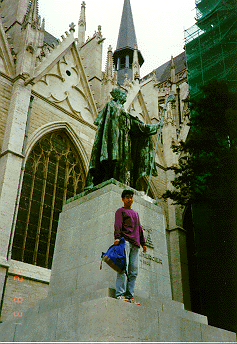 その次は、サン・ミッシェル聖堂。ここには目玉商品的なものはないけど、 トータルとしての雰囲気みたいなものが良かった。ここの建物の 横の銅像の台座によじのぼって写真を撮った。