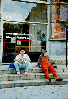 ちょうど、美術館の前4段ぐらいの階段に日本人らしき女の人が座っていた。 遠くからでも日本人を見分けるのは簡単だ。うまく書けないので箇条書にして みよう。