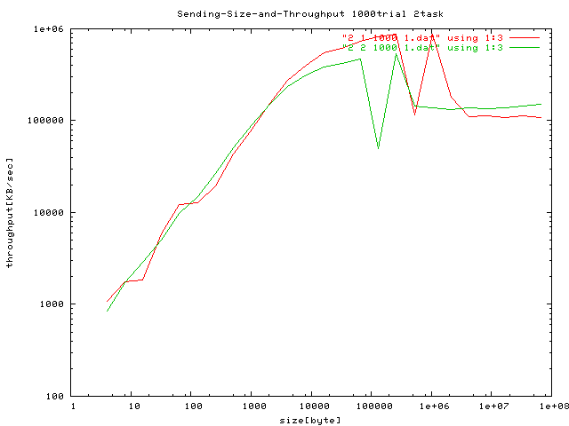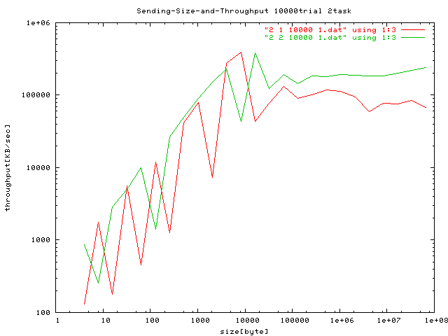 プロセスが2つのときのスループット